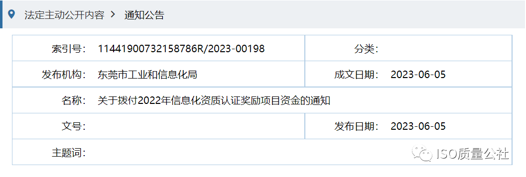 东莞市工信局组织开展了2022年信息化资质认证奖励项目的入库及资金申报工作。其中,通过CMMI贯标3级或ITSS贯标2级的企业给予30万元奖励,通过ITSS贯标3级的企业给予20万元奖励。详情如下